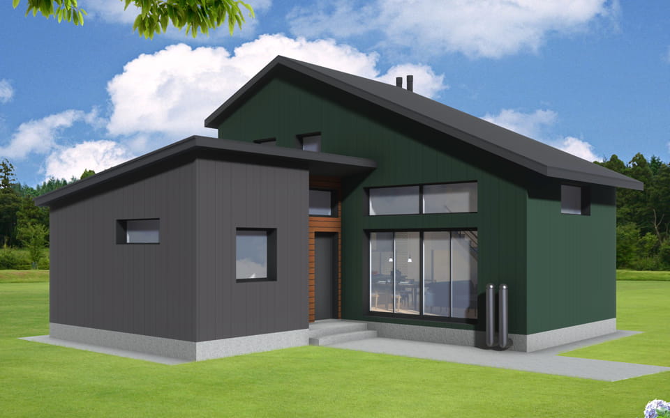 インテリアは木目調の勾配天井とダーク系の家具でメリハリのついた、かっこいい北欧系にしています。
