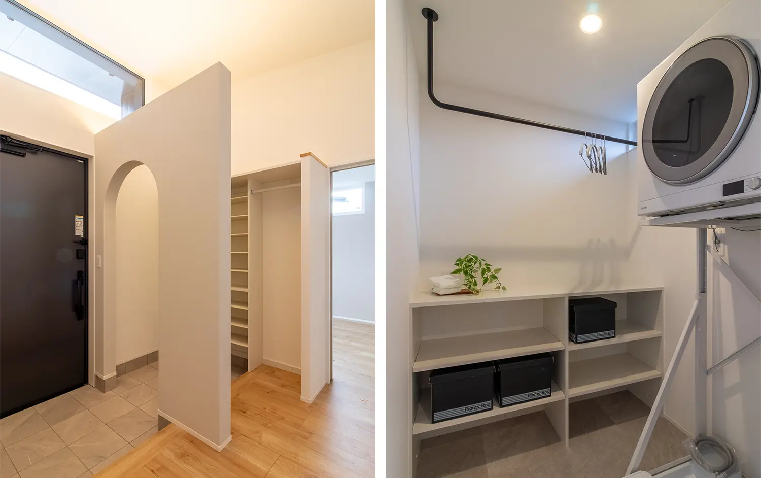 家で過ごす時は少しでも負担を軽く、そして50年後の未来を考えて。玄関と寝室・WICの位置関係に気を配り、水廻りは使いやすくまとめました。