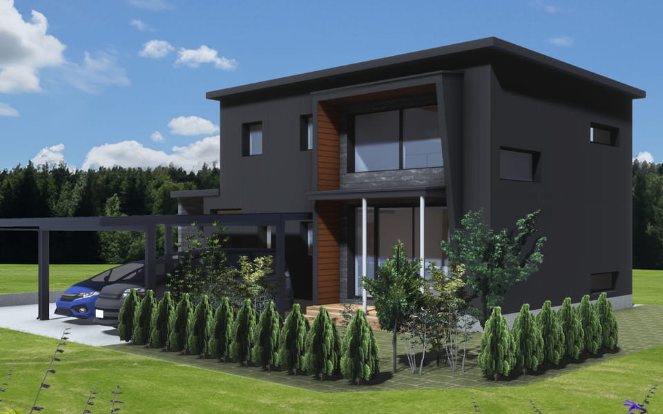 土地に合わせたゼロから作る間取りは、エクステリアも含めたトータルで満足のいく住まいに。