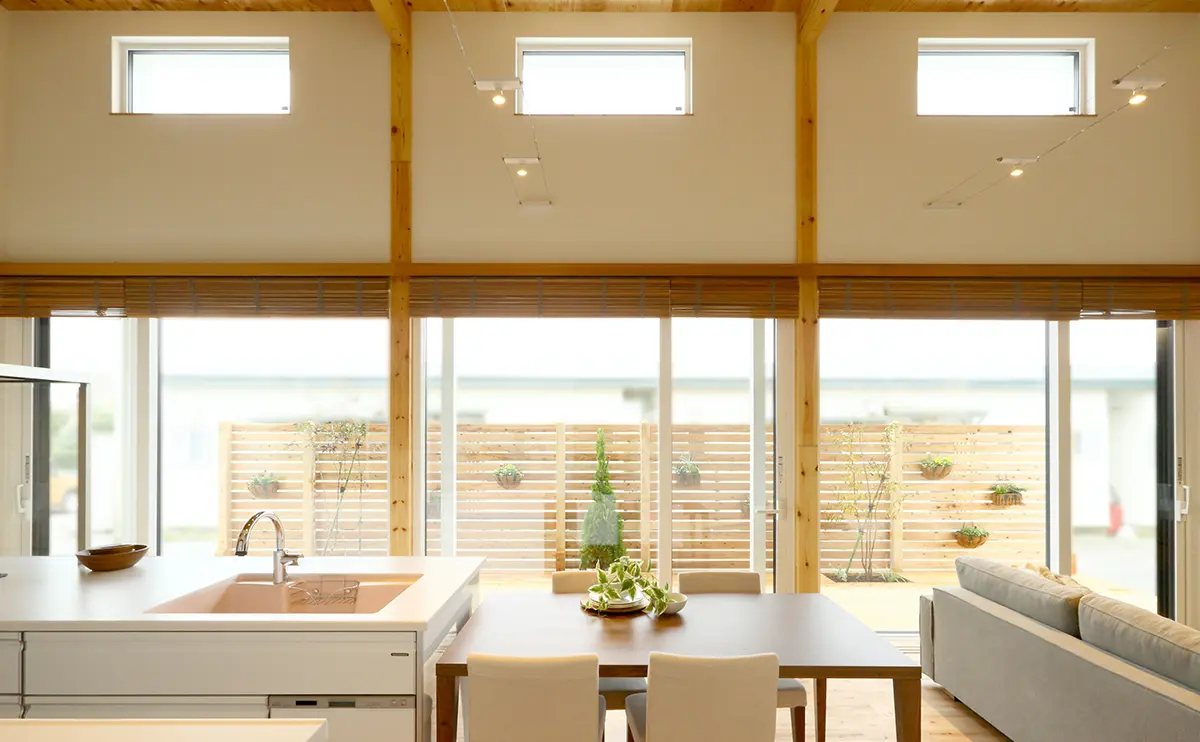 大きな窓、吹抜け、縁側。それなのに、外から丸見えにならない。