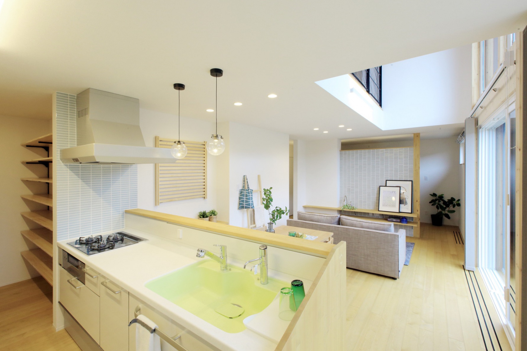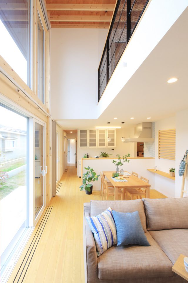 竣工:2017年 所在地:おいらせ町 延床面積:129.45㎡ (うち、フリースペース:23.18㎡) UA値:0.29 Q値:1.06 C値:0.1 換気:パッシブ換気(第3種とのハイブリッド)