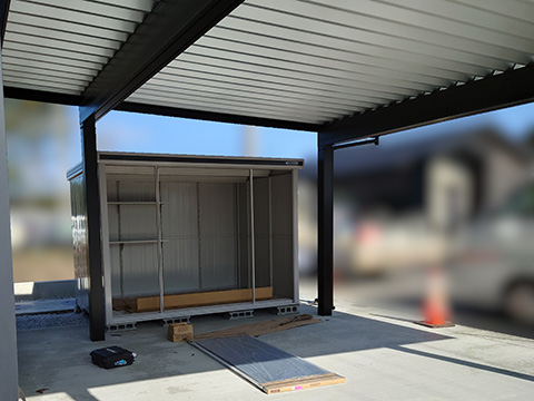 物置の組み立てや、木の目隠し塀をつくりましたよ。