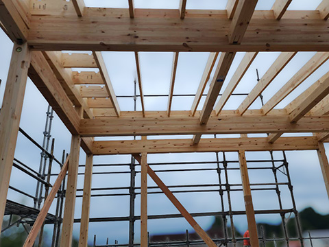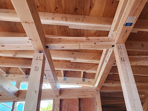 大工さん5人で一気に建て方を進めたので、骨組みがあっという間にわかるようになりました。