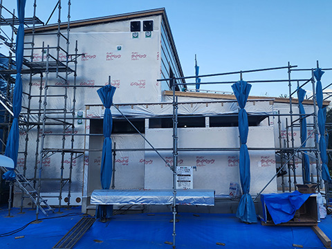 天気を見ながら内部・外部両方で断熱入れを進めていきます。