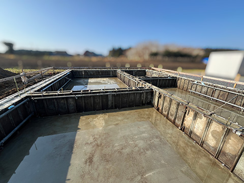基礎工事の様子その2、今回は型枠の取り付けからです。