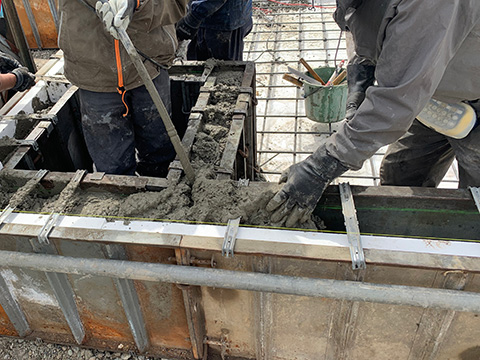 地面のアスファルト撤去やパイル工事などの下準備を終えてからの基礎工事です。