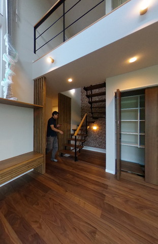 階段の下は少し床が下がっていて、ちょっとしたこもれるスペースになっています。